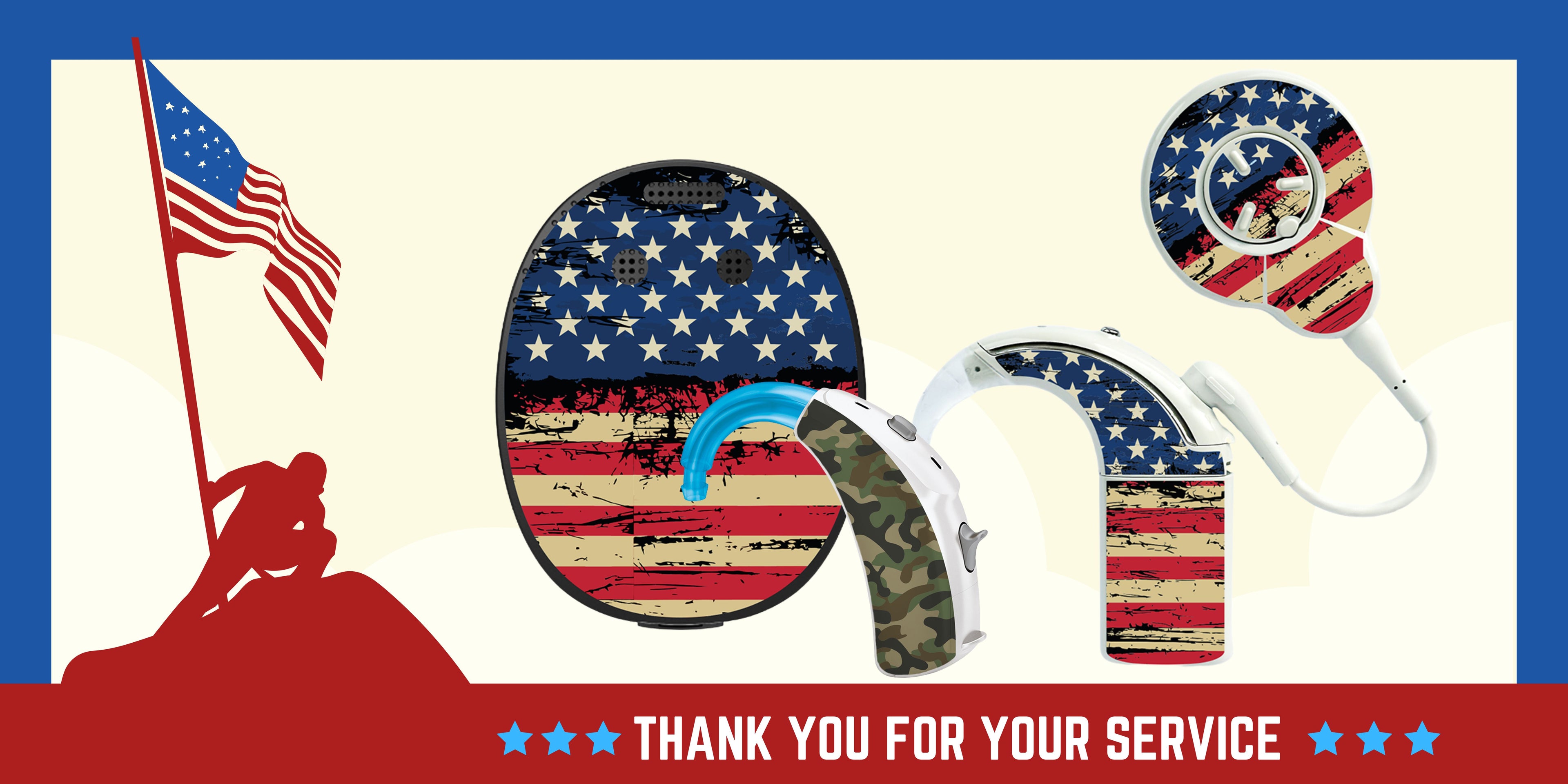 Show your American pride every day! Our exclusive HEAROES skins for hearing devices are easy to apply, leave absolutely no residue upon removal, and deliver a look that's truly awesome.